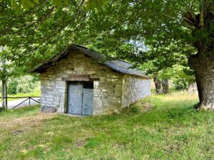 En la parte más alta del pueblo, encontraremos la Iglesia y un camino que nos llevará hasta una cascada, rodeada de increíbles castaños centenarios y acebos, donde desde aquí podremos dirigirnos al corral de lobos (antigua construcción para llevar a cabo la caza de estos animales).